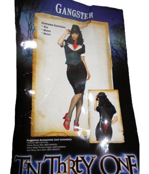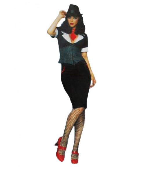 Costumul de gangsterita este pentru adulti. Contine jacheta bluza, fusta, cravatta si palarie.