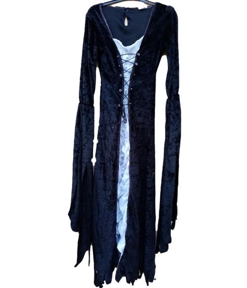 Rochia de vampirita este de o calitate exceptionala, catifea calitativa, potrivita pentru fetitele care vor sa fie vedetele petrecerii de Halloween. Faldurile frontale ale rochitei si manecile ample contribuie la aspectul autentic al rochitei.
