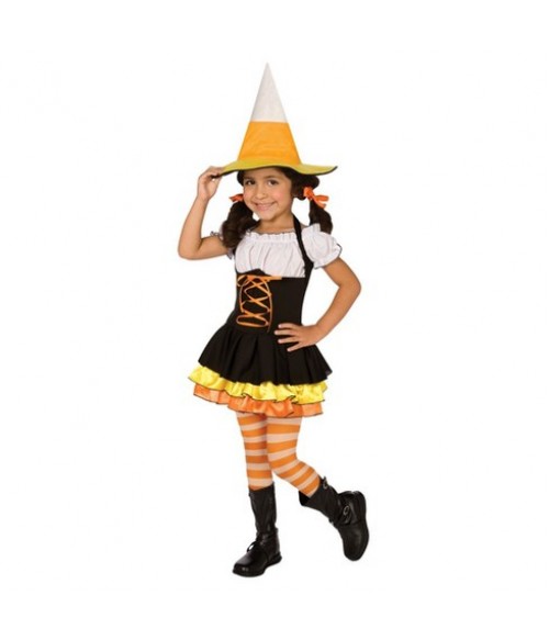 Costumatie Vrajitoare Candycorn, marca Leg Avenue, marime 4-6 ani, stare foarte buna, din bumbac si catifea, cu fustita multistrat. Contine rochie si palarie.